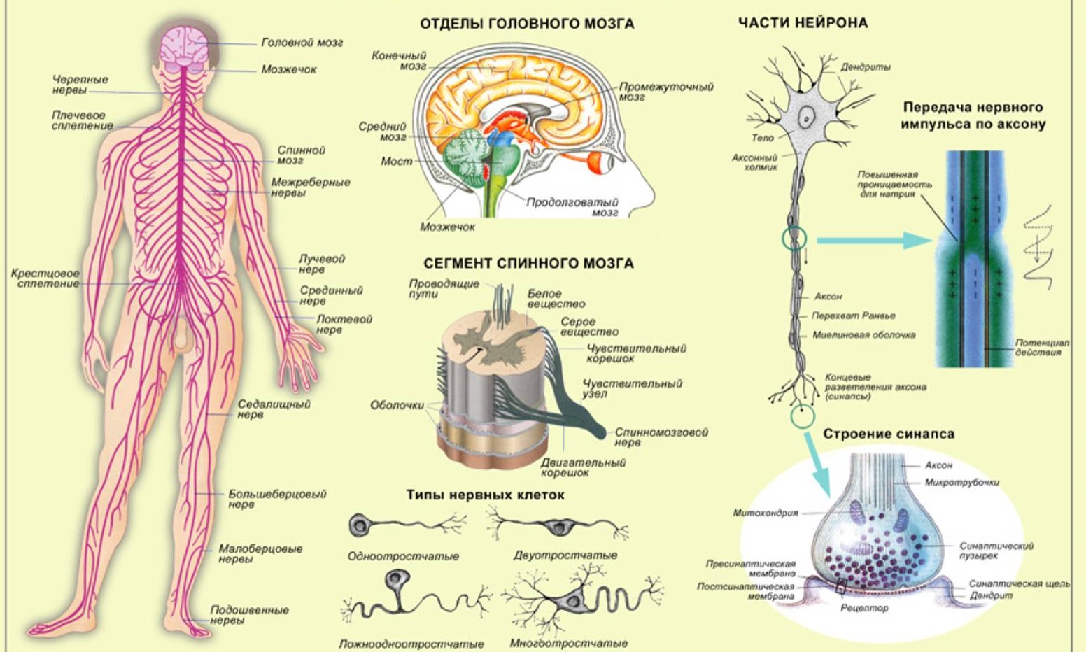 Нейроны — это основные функциональные единицы нервной системы, которые передают электрические сигналы. Каждый нейрон состоит из следующих частей: