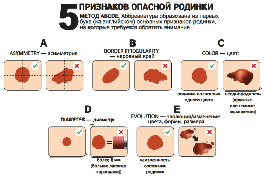 — Симптомы: Необычные родинки, изменения в цвете и форме существующих родинок, зуд или кровоточивость.