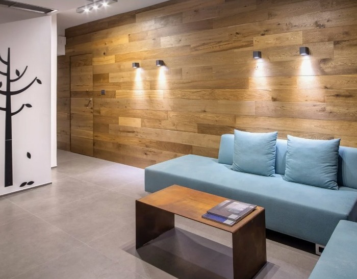 — Панели: используются как для отделки стен, так и для создания акцентных зон. Это могут быть деревянные, пластиковые или МДФ панели.